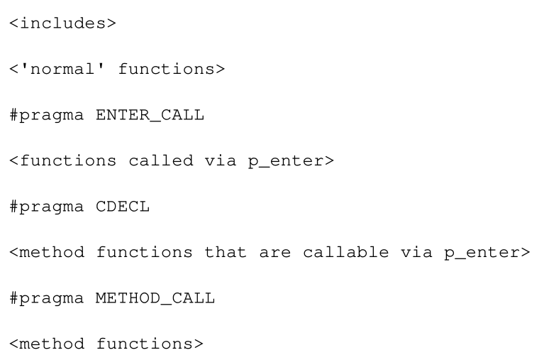 Instead of working with JPI/Clarion to add a “proper” OO C module to TopSpeed, they wrote a preprocessor. But it only does preprocessing on the class definitions. Methods are just functions that have to take a pointer to the class definition.